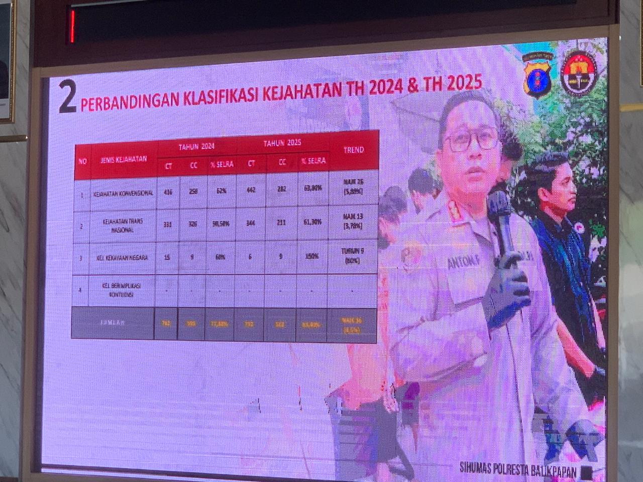 Berdasarkan klasifikasi perkara, Polresta Balikpapan membagi fokus penanganan antara kejahatan konvensional—seperti pencurian dan penganiayaan—dengan kejahatan transnasional, terutama peredaran narkoba. Sepanjang 2025, kejahatan transnasional tercatat sebanyak 344 kasus, dengan 211 kasus berhasil diselesaikan atau sekitar 61,3 persen.