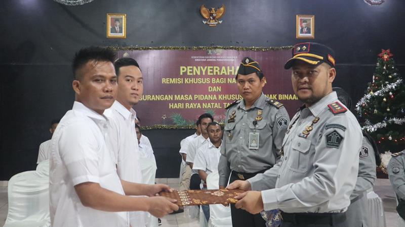 Penyerahan remisi kepada WBP berlangsung bersamaan dengan perayaan Natal di Rutan Tanah Grogot, Senin, 25 Desember 2023 .