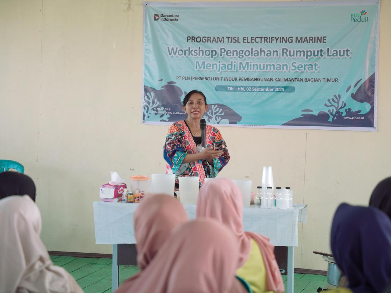 metroikn, BONTANG – PT PLN (Persero) Unit Induk Pembangunan Kalimantan Bagian Timur (UIP KLT) menggelar pelatihan pengolahan rumput laut menjadi minuman serat di Kampung Tihi-Tihi, Kota Bontang, Selasa (2/9). Kegiatan ini menjadi bagian dari Program Tanggung Jawab Sosial dan Lingkungan (TJSL) bertajuk Electrifying Marine yang menyasar pengembangan potensi pesisir.