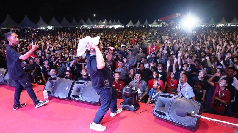 metroikn, Tenggarong – Aksi panggung Grup Band Jamrud memukau ribuan warga yang hadir di Lapangan Kantor Camat Muara Badak, Kutai Kartanegara (Kukar).