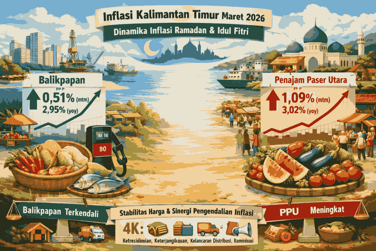 Metroikn, Balikpapan – Dinamika inflasi di Kalimantan Timur pada Maret 2026 menunjukkan pola yang berbeda antarwilayah. Kota Balikpapan tercatat lebih landai, sementara Kabupaten Penajam Paser Utara (PPU) mengalami peningkatan di tengah lonjakan permintaan masyarakat selama Ramadan dan Hari Besar Keagamaan Nasional (HBKN) Idul Fitri.
