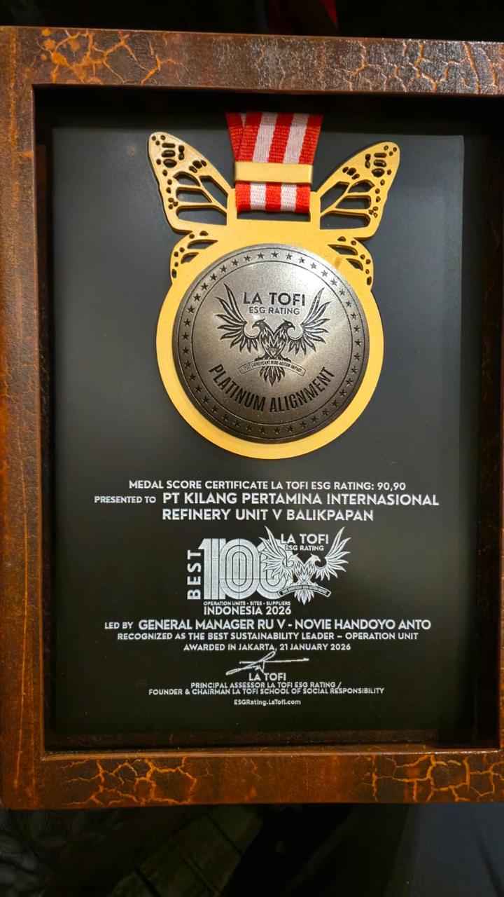 Selain itu, General Manager PT KPI Unit Balikpapan, Novie Handoyo Anto, meraih penghargaan Best 100 Operation Units/Sites/Suppliers Indonesia 2026 dengan nilai 90,90 menurut La Tofi ESG Rating.