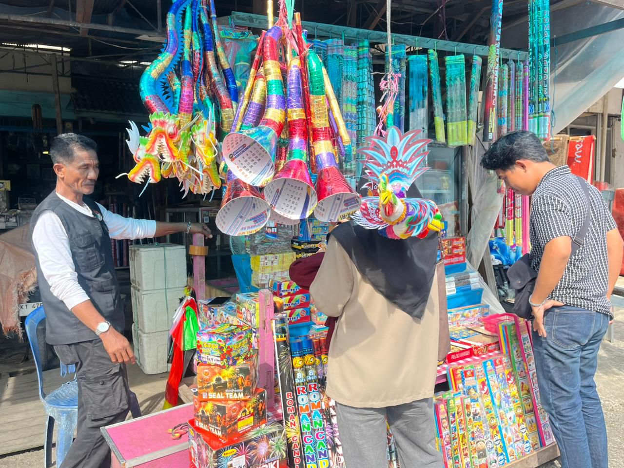 “Jika dibandingkan tahun lalu, jumlah pembeli saat ini memang menurun cukup terasa. Biasanya menjelang malam tahun baru sudah ramai,” ujar Syamsudin saat ditemui di lapaknya, Selasa (30/12/2025).