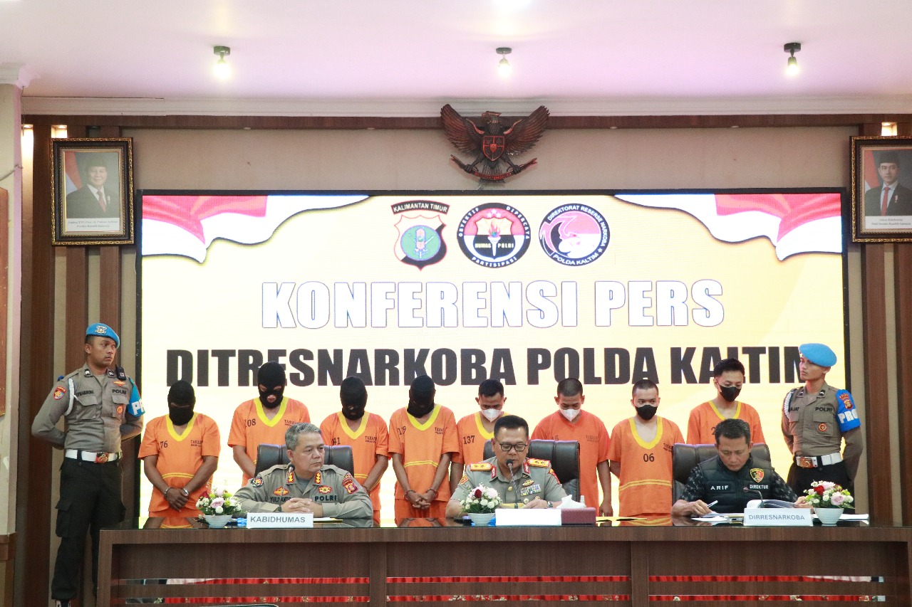 Konferensi pers ini dipimpin langsung oleh Kapolda Kaltim Irjen Pol. Endar Priantoro didampingi Dirresnarkoba Kombes Pol. Arif Bastari dan Kabidhumas Kombes Pol. Yuliyanto. Turut hadir pula perwakilan dari staf Ditresnarkoba, Bidpropam, Dittahti, serta jajaran media yang menjadi mitra Polda Kaltim.