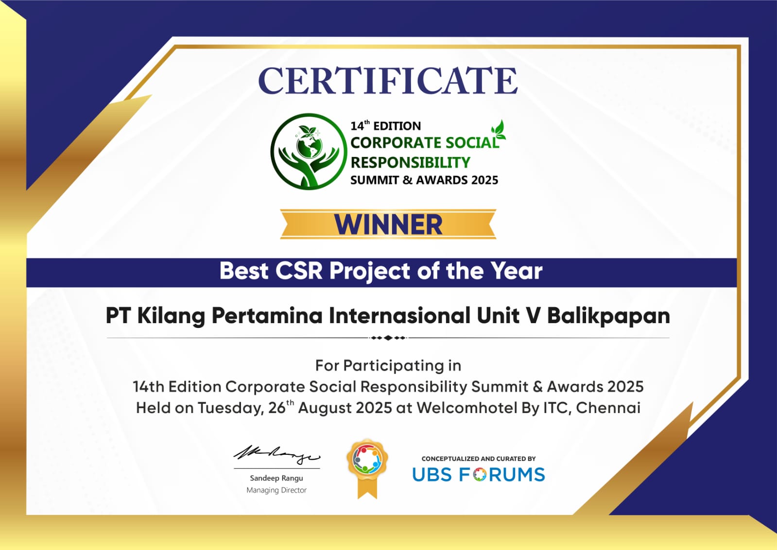 metroikn, BALIKPAPAN – Program Kaliandra binaan PT Kilang Pertamina Internasional (KPI) Unit Balikpapan berhasil meraih penghargaan internasional bergengsi dalam ajang 14th Edition Corporate Social Responsibility Summit & Awards 2025 yang digelar pada 26 Agustus 2025 di Chennai, India. Kaliandra dinobatkan sebagai “Best CSR Project of the Year”, mengungguli berbagai inisiatif tanggung jawab sosial perusahaan dari berbagai negara.
