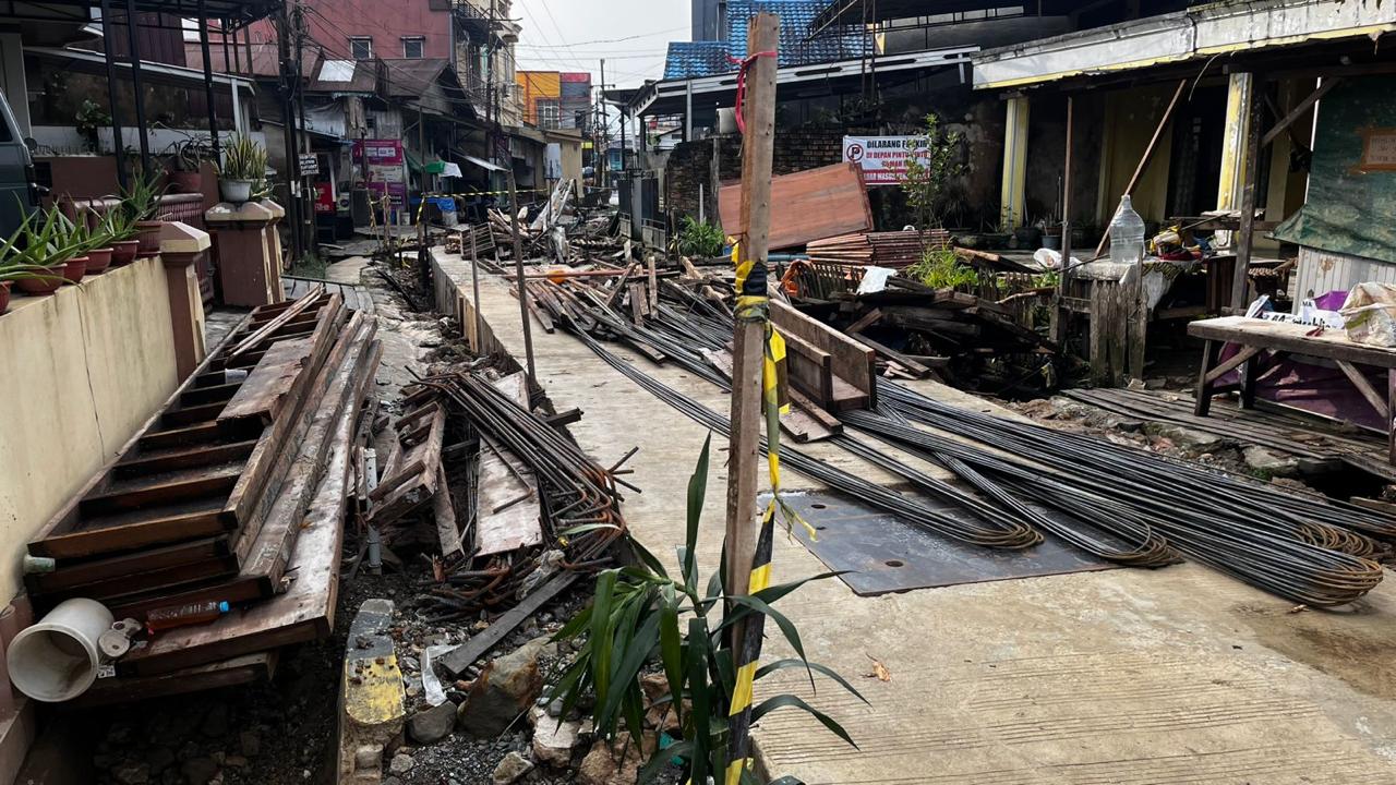 Ia mengakui, kondisi lapangan menjadi salah satu kendala yang membuat pekerjaan tampak lambat di mata warga. Lokasi proyek berada di tengah jalan utama, sehingga menyulitkan mobilisasi alat dan material. Cuaca yang sering hujan juga menambah tantangan karena air kerap menggenangi area kerja.