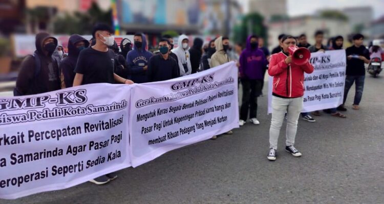 Sekelompok mahasiswa yang tergabung dalam Gerakan Mahasiswa Peduli Kota Samarinda (GMP-KS), mendorong percepatan revitalisasi Pasar Pagi.