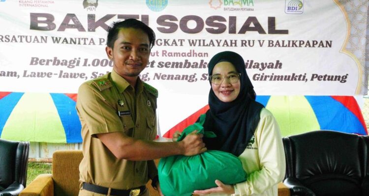 Menyambut Ramadan 1445 Hijriah PT Kilang Pertamina Internasional (KPI) Unit Balikpapan melalui Persatuan Wanita Patra (PWP) tingkat Wilayah Balikpapan melakukan bakti sosial dengan menyalurkan 1.000 paket sembako