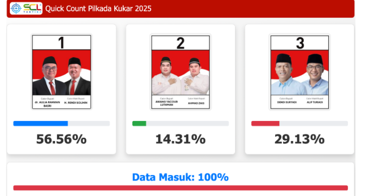 Hasil Hitung Cepat PSU Pilkada Kutai Kartanegara: Aulia–Rendi Unggul Sementara Kukar, POLITIK|19 April 202520 April 2025oleh Admin Web metroikn, KUKAR — Hasil hitung cepat (quick count) yang dilakukan oleh SCL